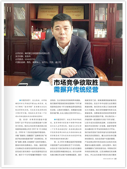 在《中国BABY》2月贺岁刊报导的《飘雪视频APP在线看黄竞争,胜在变革——飘雪视频下载安装孕婴,市场竞争欲取胜,需掘弃传统经营》一文中,飘雪视频下载安装孕婴总经理吴东升分享了飘雪视频APP在线看黄的经营理念、发展历程与远大愿景。